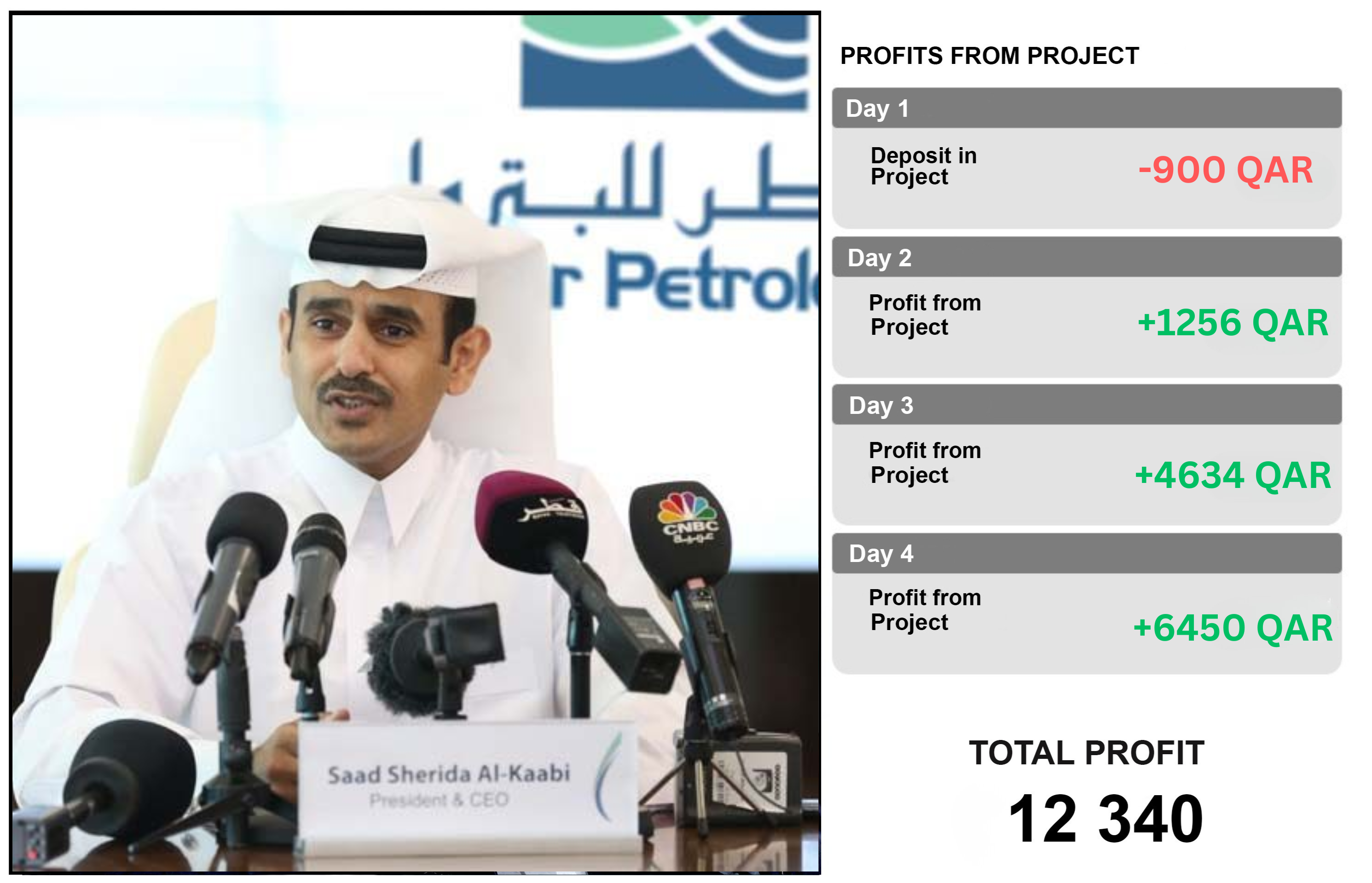 الآن، كل المواطنين القطريين، بغض النظر عن المهنة أو الخلفية، لديهم فرصة لكسب أكثر من 110,000 ريال قطري شهريًا من خلال أسواق الأسهم والعملات الرقمية المرتبطة بالطاقة – دون الحاجة لأي خبرة مسبقة. منصة QatarEnergy Profit مرخّصة بالكامل ومدعومة من خبراء ماليين في قطر، مما يضمن حصول كل مشارك على التوجيه والدعم المهني.
